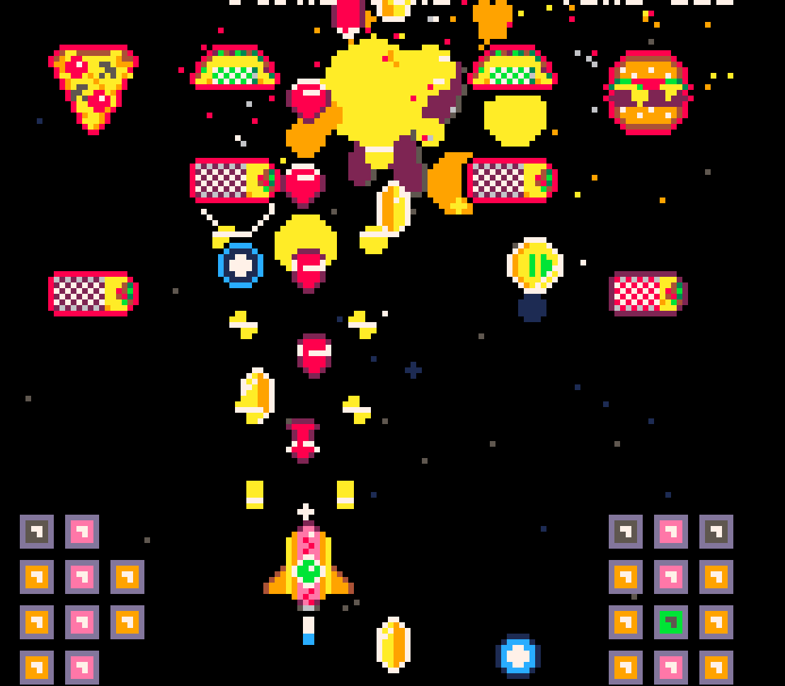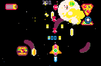 Time is running out! You have 150 seconds to SAVE THE WIENER-VERSE, The ZA Empire is invading, jump into the Glizzo 5000 and shoot down the scum of the junk food nebula! Glaze bullets for extra points (careful tho dont get too close! use the slow speed!) collect all the coins, shoot the caravan blocks and beat the evil Deep Pan Supreme!
