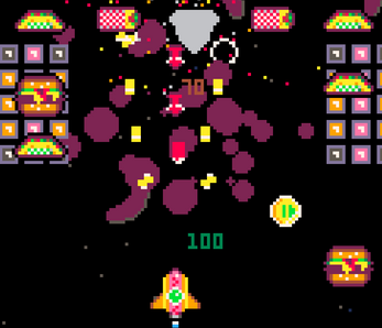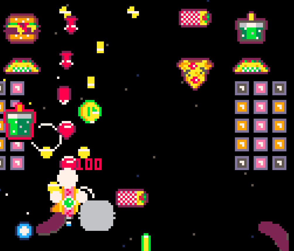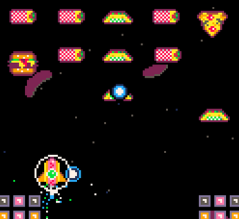 this is better than it has any right to be my dude, so freaking fun, and I love the hilarious writing, its just a good time! tactile and explosive, im a fan - love how you brought the space invaders style formula up to 2026 standards :) and I'm in LOVE with your sprite work, it is next level.